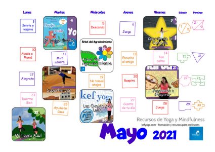 Aquí os dejamos un nuevo calendario descargable para mayo, ya podeis hacer actividades de Yoga y Mindfulness en casa o en el cole.