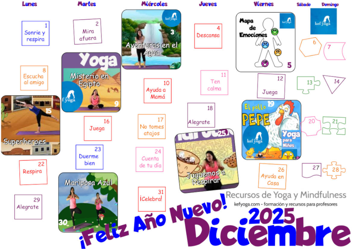 Este calendario esta creado en PDF y podéis ir a las actividades haciendo click en ellas desde vuestro teléfono u ordenador, si lo habéis imprimido podéis usar los códigos QRs que os llevaran a las distintas actividades. Nuestra intención es que contéis con una propuesta sana y divertida, así podéis practicar Yoga y Mindfulness durante todo el mes, y si queréis más actividades siempre podéis venir a nuestra página y nuestro canal de YouTube.