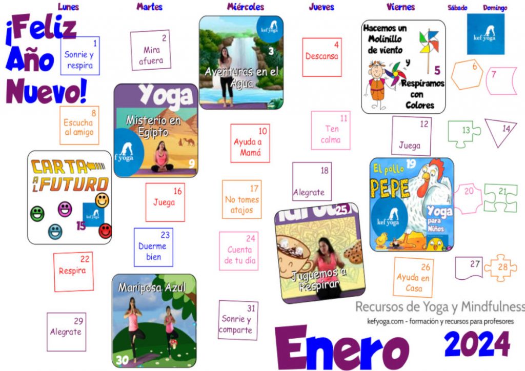 Calendario Enero 2024 30 diciembre 2023 - ¡Hola a todos! y ¡Feliz año! Aquí os dejamos un nuevo calendario descargable para el mes de Enero de 2024. Este calendario esta creado en PDF y podéis ir a las actividades haciendo click en ellas desde vuestro teléfono u ordenador, si lo habéis imprimido podéis usar los códigos QRs que os llevaran a las distintas actividades. Nuestra intención es que contéis con una propuesta sana y divertida, así podéis practicar Yoga y Mindfulness durante todo el mes, y si queréis más actividades siempre podéis venir a nuestra página y nuestro canal de YouTube. Descarga aquí tu calendario No dejéis de compartir vuestro Yoga y nuestro calendario. Vuestra Yoguini de cabecera, Blanca Sissa Nuestro canal youtube: youtube.com/kefyoga Recuerda que en Kef Yoga te ofrecemos formación. Para saber más has click aquí Sigue leyendo