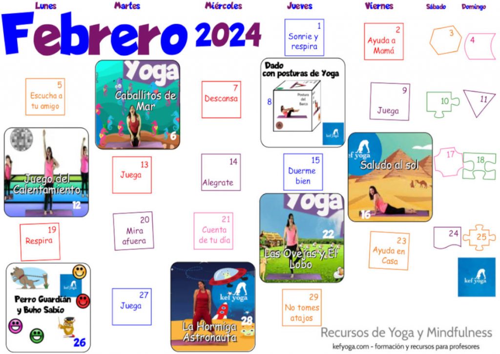 Calendario Febrero 2024 28 enero 2024 - ¡Hola a todos! Aquí os dejamos un nuevo calendario descargable para el mes de Febrero. Este calendario esta creado en PDF y podéis ir a las actividades haciendo click en ellas desde vuestro teléfono u ordenador, si lo habéis imprimido podéis usar los códigos QRs que os llevaran a las distintas actividades. Nuestra intención es que contéis con una propuesta sana y divertida, así podéis practicar Yoga y Mindfulness durante todo el mes, y si queréis más actividades siempre podéis venir a nuestra página y nuestro canal de YouTube. Descarga aquí tu calendario No dejéis de compartir vuestro Yoga y nuestro calendario. Vuestra Yoguini de cabecera, Blanca Sissa Nuestro canal youtube: youtube.com/kefyoga Recuerda que en Kef Yoga te ofrecemos formación. Para sabe más has click aquí Sigue leyendo